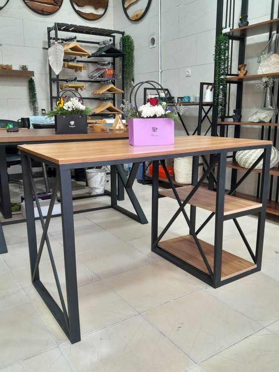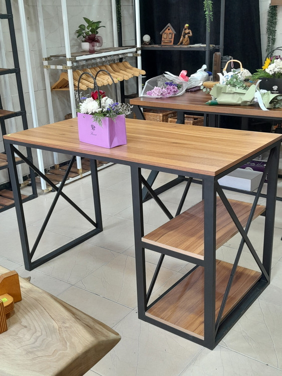 میز تحریر مدل کارن ترکیبی از چوب ام دی اف و فلز مقاوم است