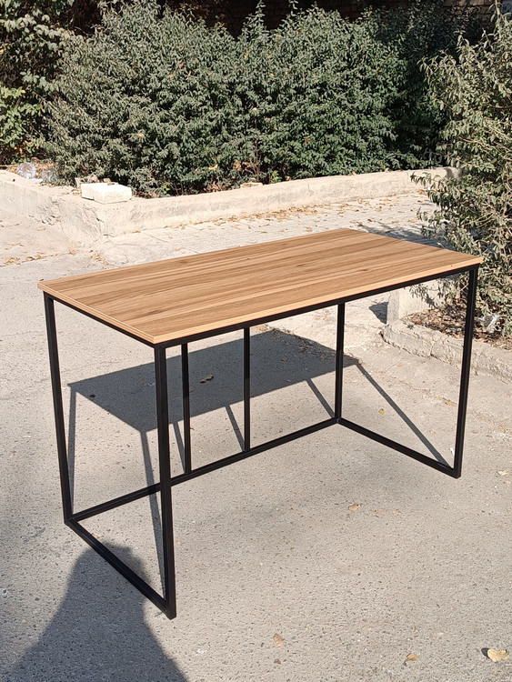 میز تحریر با طراحی مینیمال و ترکیب صفحه چوبی با فریم فلزی، گزینهای زیبا و کاربردی برای مطالعه و کار است. پایههای فلزی محکم و صفحهی مقاوم، دوام بالا و استفاده راحت را فراهم میکند.